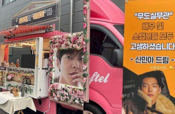 공개된 사진 속에는 영화 '무도실무관' 촬영장에 도착한 커피차의 모습이 담겼다. 촬영 중인 김우빈을 응원하기 위해 촬영장에 선물한 것.
