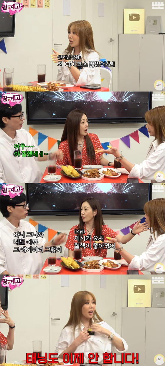 이날 제시는 쉬는 시간에 대한 이야기가 나오자 "나 아이코스(전자담배) 끊었다. 연초도 끊었다"고 말했다.