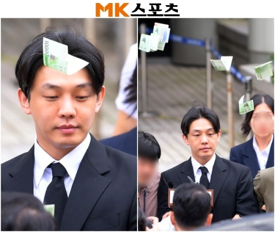 유아인이 법원을 나서며 한 시민이 던진 돈다발을 맞았다.