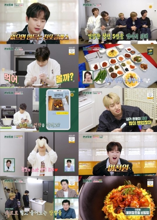 총 5명의 장정이 우르르 들어서자 이찬원은 당황했다. 알고 보니 이찬원이 수타면 반죽을 하고 있는 사이 상연이 멤버들과 함께 간다는 메시지를 보냈으나, 이찬원이 보지 못했던 것. 평소와 달리 식재료도 없는 상황에서 이찬원은 불닭장조림으로 덮밥을 만들었다. 또 수타면으로 김치어묵칼국수, 죽까지 풀코스로 만들었다. 더보이즈 다섯 멤버는 감탄하며 이찬원의 음식을 폭풍흡입했다.