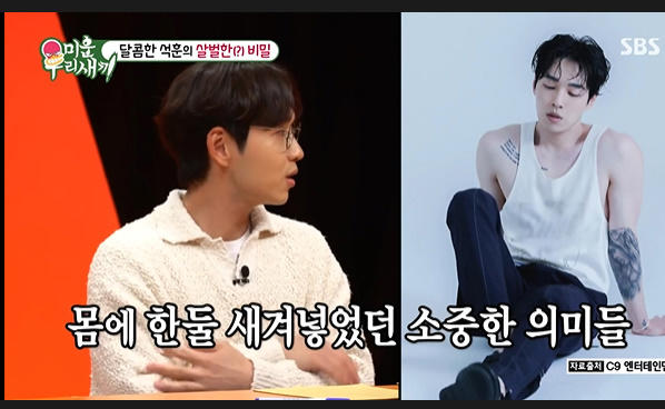 '미우새'에서 이석훈이 출연, 몸에 문신한 이유를 밝혔다.