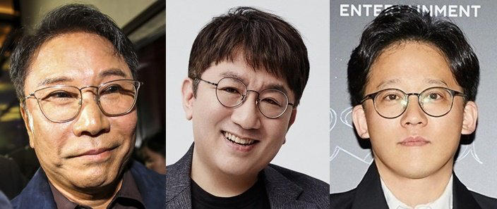 왼쪽부터 이수만 전 SM 총괄, 방시혁 하이브 의장, 이성수 SM 대표. 사진=뉴시스·SM·하이브 제공 © 제공: 파이낸셜뉴스