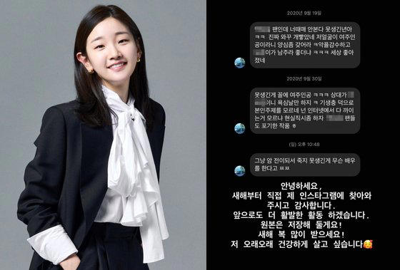 공개된 사진에 따르면 악플러는 2020년 9월부터 박소담에게 악플이 담긴 메시지를 수차례 전송했다.