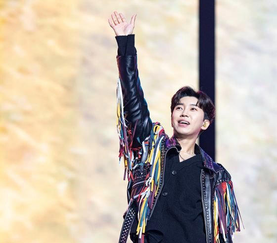 지난 10일 서울 고척스카이돔에서 열린 가수 임영웅의 ‘아임 히어로’ 앙코르 콘서트 모습. 11일까지 이틀간 3만6000명의 관객이 고척돔을 메웠다. 무대 의상을 바꿔가며 3시간 동안 열창을 아끼지 않은 임영웅은 아이브의 ‘애프터 라이크’ 등 댄스 무대를 선보이기도 했다.