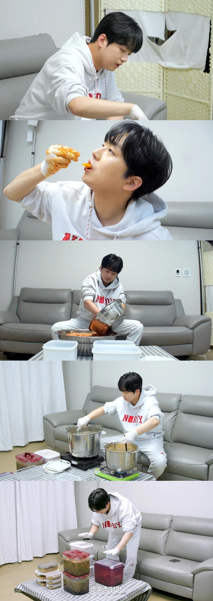 대용량 요리는 여기서 멈추지 않는다. 이찬원은 곧바로 도토리묵 100인분을 직접 쑤기 시작한다. 도토리묵이 눌어붙지 않도록 젓고 또 젓던 이찬원은 구수한 맛의 아이스크림으로 당을 섭취하며 다시 힘을 낸다. 그 결과 이찬원은 수제 도토리묵 100인분에 더불어 특기 중의 특기인 겉절이 100인분까지 뚝딱 완성한다.
