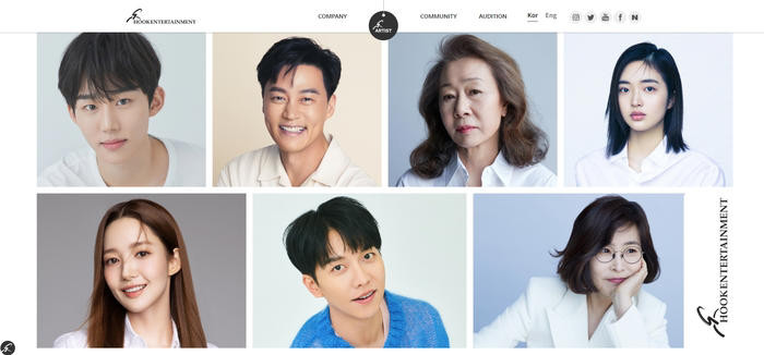 후크엔터테인먼트에는 가수 이선희를 비롯해 배우 이서진, 박민영, 이승기, 윤여정 등이 소속되어 있다.