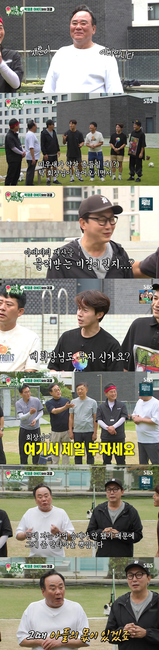 10월 23일 방송된 SBS '미운 우리 새끼'(이하 '미우새')에서는 연 매출 180억 레미콘 회사 대표인 탁재훈 아버지를 비롯한 회장단과 아들들의 족구 대결이 펼쳐졌다.