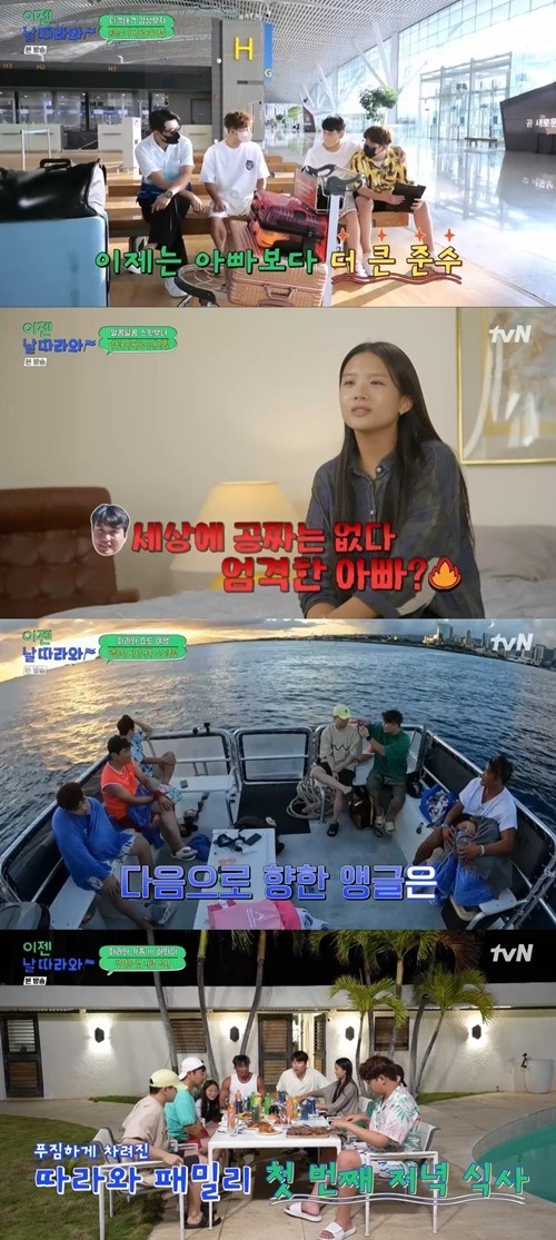 23일 오후 방송된 tvN 예능 프로그램 '이젠 날 따라와'에서는 윤민수-윤후 부자, 이종혁-이준수 부자, 추성훈-추사랑 부녀, 이동국-이재시 부녀가 하와이 여행을 떠나는 모습이 그려졌다.