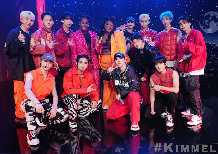 그룹 세븐틴이 ‘지미 키멜 라이브!’를 ‘핫’하게 달궜다.