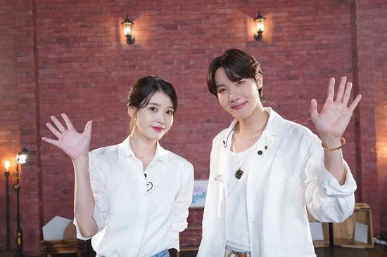 함께 공개된 사진에는 제이홉과 아이유가 함께 손바닥을 펼치는 포즈를 취한 채 카메라를 응시하고 있었다. 톱스타 아이유와 제이홉의 만남이 눈길을 끌었다.