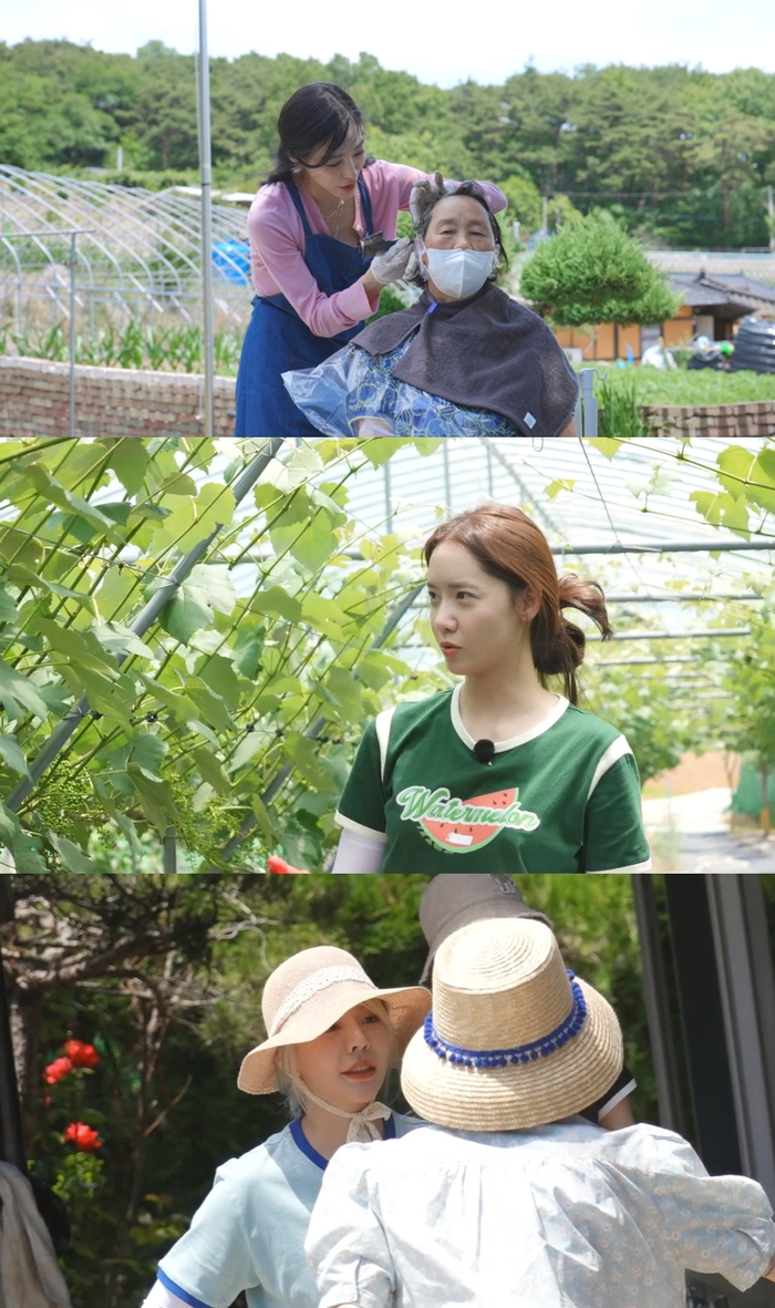효연과 윤아는 포도밭, 티파니 영과 유리는 새치 염색, 태연과 써니와 수영은 유리창 청소와 강아지 목욕을 맡아 각자의 일터로 향한다. 먼저 새치 염색 팀 유리는 넘치는 열정, 자신감과는 달리 염색 초보의 엉성한 손놀림으로 반전을 선사한다. 실력은 부족하지만 친화력만큼은 최고인 유리는 할머니와 친손녀 같은 케미를 발산해 훈훈함을 더한다.