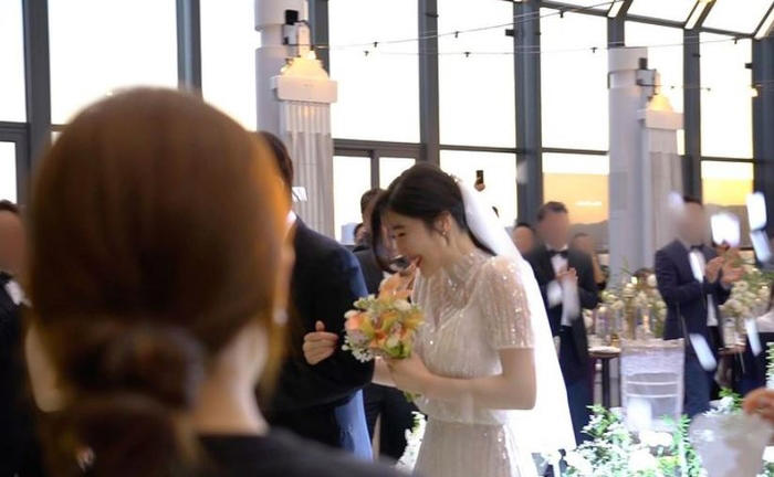 공개한 사진에서 이해리는 하얀 웨딩드레스를 입고 밝은 미소를 보이며 행복한 신부의 모습을 보여줬다.