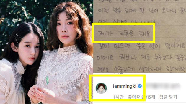 다비치 이해리가 깜짝스러운 결혼 소식을 전한 가운데, 강민경이 귀여운 댓글을 달며 ‘찐친’ 케미를 선보였다.