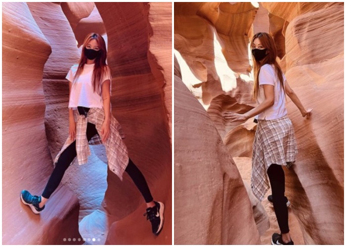 한예슬은 지난 2일 인스타그램에 "HIKING THROUGH WONDERs"라는 글과 함께 미국 라스베이거스에 위치한 엔텔로프 캐니언에 남자친구와 방문해 찍은 인증샷을 공개했다.