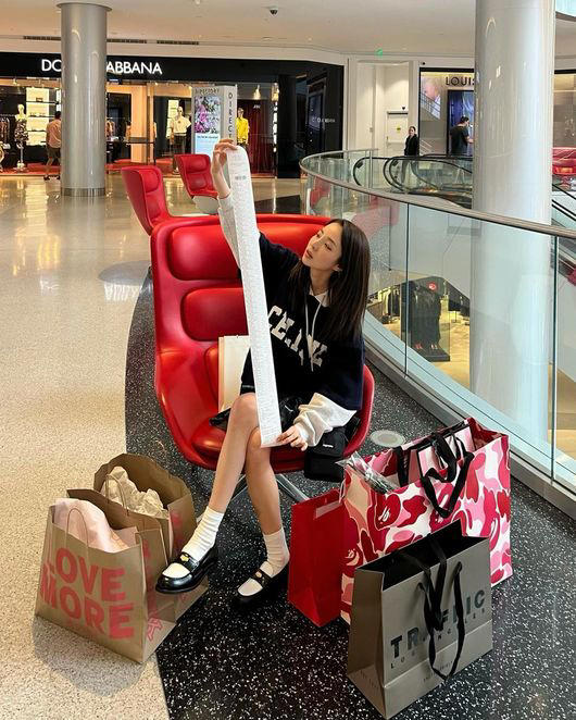 SNS에 게재한 사진에서 산다라박은 쇼핑몰 의자에 앉아 쇼핑으로 지친 몸을 쉬고 있는 듯한 모습. 특히 산다라박 주위를 가득 채운 쇼핑백이 시선을 끌었는데 다른 사진에서 산다라박은 1m가 넘는 듯한 길이의 영수증을 입에 물고 남다른 쇼핑 플렉스를 인증했다.