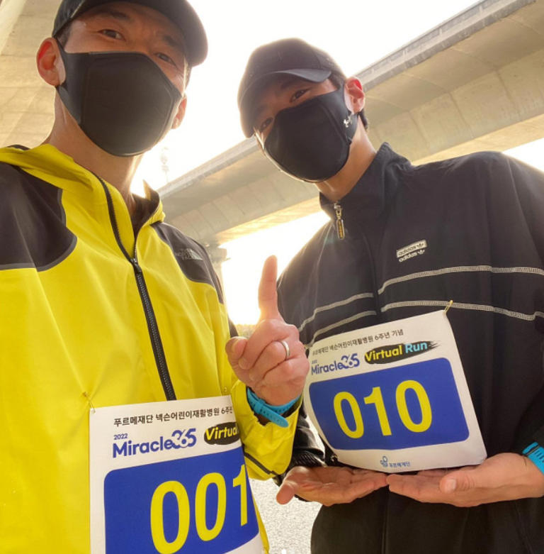 션은 이어 "직접 참가비를 내고 신청하고 함께 달려준 보검이의 응원이 장애어린이들과 가족들에게 큰 응원이 됩니다. #010 #박보검 #아직이름못정한러닝크루. 장애어린이들이 좀 더 살기 편한 대한민국을 꿈꿔 봅니다"라며 "*국내 최초 어린이전문 재활병원 개원 6주년을 기념하는 미라클365 런. 2017년 장애어린이들의 재활치료비를 지원하기 워해서 제가 만든 크루런입니다. #2022미라클365버츄얼런 #미라클365버츄얼런 #푸르메재단 #어린이재활병원 #미라클365"이라는 글을 덧붙였다.