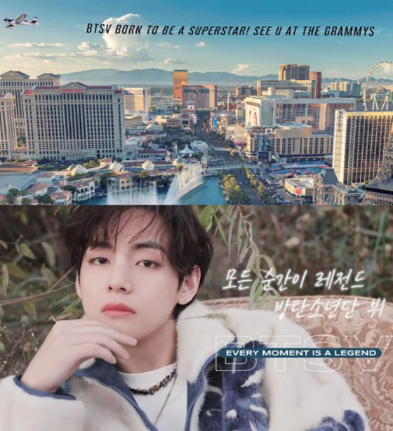 배너에는 '본투비 슈퍼스타 BTS V! 그래미에서 만나요!'라는 문구를 담아 라스베이거스 공연장을 찾은 글로벌 팬들과 관계자들의 이목을 집중시킬 것으로 예상된다.