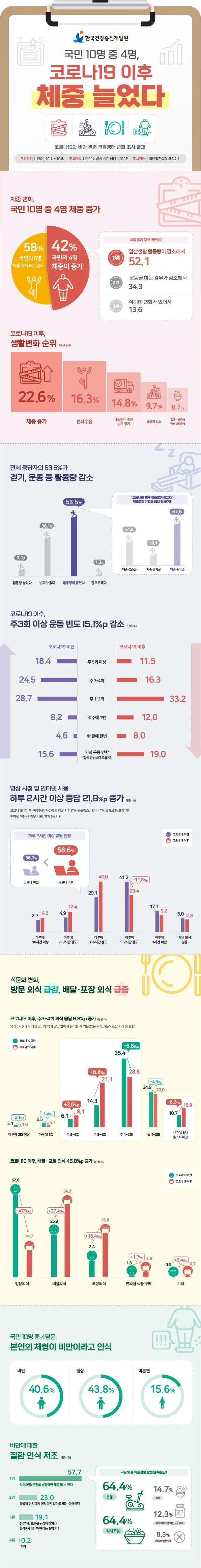 코로나19 이후 국민 체중 증가 상황