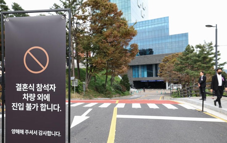 이날 결혼식은 사전에 초청장을 받은 하객만 입장이 가능하도록 출입로를 통제한 채 비공개로 진행됐다. 민정 씨는 백색의 드레스를 입었고, 민정 씨와 신랑 황 씨가 어린 시절부터 현재까지 각자 자라온 사진과 두 사람이 만나 함께 추억을 남긴 사진 등이 벽면에 전시됐다.