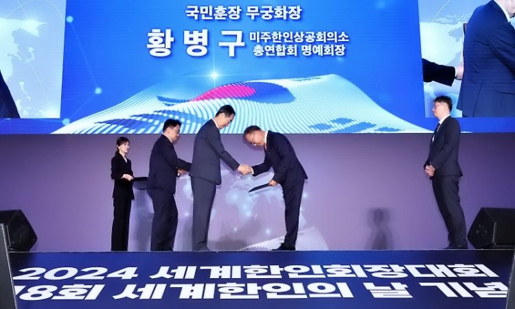 황병구 명예회장은 지난 4일 한국에서 열린 세계한인의 날 기념식에서 한덕수 국무총리로부터 무궁화장을 받았다. 황 명예회장은 지난해 처음으로 한국이 아닌 해외(오렌지 카운티)에서 개최된 세계한인비즈니스대회 조직위원장을 맡아 한국 중소기업의 미국 진출과 수출 확대에 기여했다.