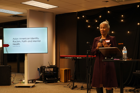 윤미 햄튼 전 릴번 시의원이 '아시아계 미국인의 차별 경험과 정체성'을 주제로 대담을 진행하고 있다.