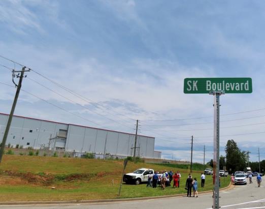 19일(현지시간) SKBA 관계자와 클라크 힐 커머스 시장, 짐 쇼우 잭슨카운티 상공회의소장 등 지역 주요 인사들이 참석한 가운데 SKBA 조지아 공장에서 현판식을 가졌는데 이 자리에서 힐 시장은 "커머스시와 잭슨카운티를 대표해서 스티브 레이놀즈 인더스트리얼 파크웨이 구간을 SK블러바드로 공식적으로 개명했다"고 밝혔다.