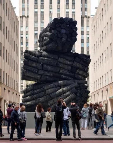 이 작가는 경북 청도에서 공수한 숯을 록펠러센터의 중심과 색스피프스애비뉴 백화점 사이에 쌓았다.