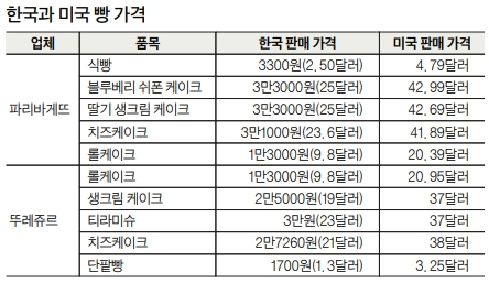케이크는 뚜레쥬르와 파리바게뜨 우유 생크림 케이크 경우 3만3000원(25달러) 정도지만 미주지역 매장에서 비슷한 케이크를 사려면 37달러 이상이다.
