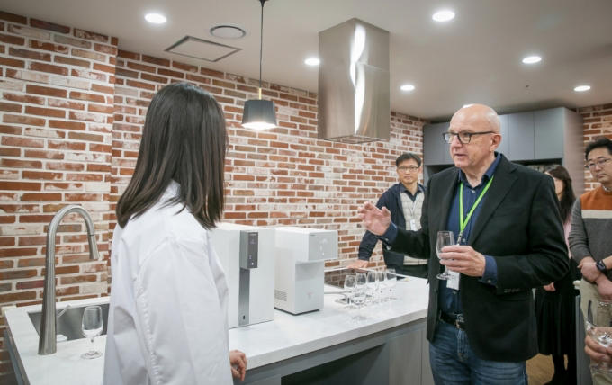 워터 소믈리에 마이클 마스카 박사가 지난 21일 서울 관악구에 있는 코웨이 환경기술연구소를 방문했다. 마스카 박사는 '세계 물의 날(3월22일)'을 맞아 한국국제소믈리에협회 초청을 받고 한국을 방문 중이다.