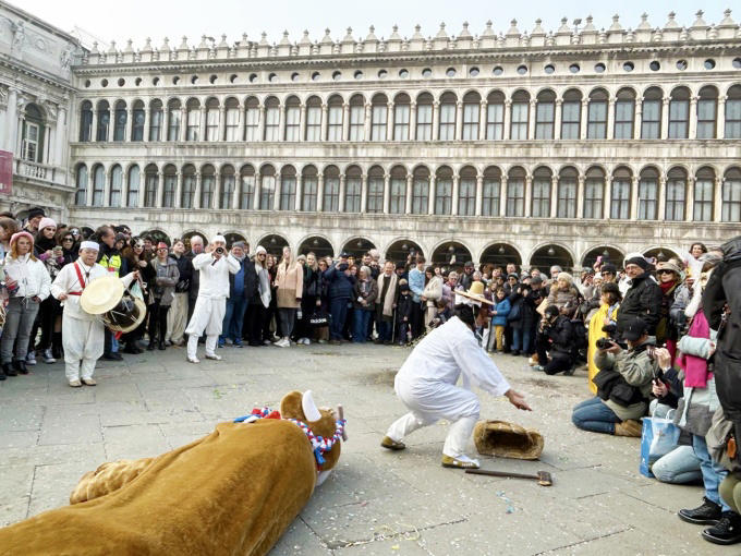 18일 안동시에 따르면 전날 오후3시(이탈리아 현지시간), 이탈리아 베네치아 산 마르코 광장에서 열리는 '베네치아 카니발' 축제 현장에서 한국의 대표 탈춤인 안동 화회별신굿이 신명나는 탈춤 한마당을 펼쳤다.