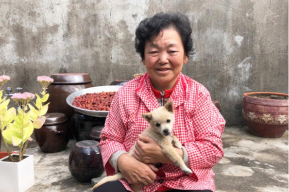 권안자 할머니가 2020년 12월 자신의 집에서 ‘칠곡할매글꼴’ 제작 기념촬영을 하고 있다. 경북 칠곡군 제공© 경향신문