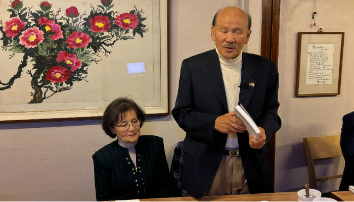미주 한인 사상 최초로 상하원 5선을 거친 임용근 전 의원(오른쪽)이 기자들과 만나 책을 펴낸 소감을 말하고 있다. 이번 방한에는 아내 임영희씨도 함께 했다. © 제공: 노컷뉴스