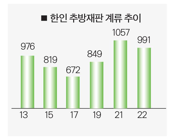 이와 함께 추방 재판에 넘겨진 한인들이 계류돼 있는 기간은 평균 1,194일이 걸리고 있는 것으로 조사됐다.