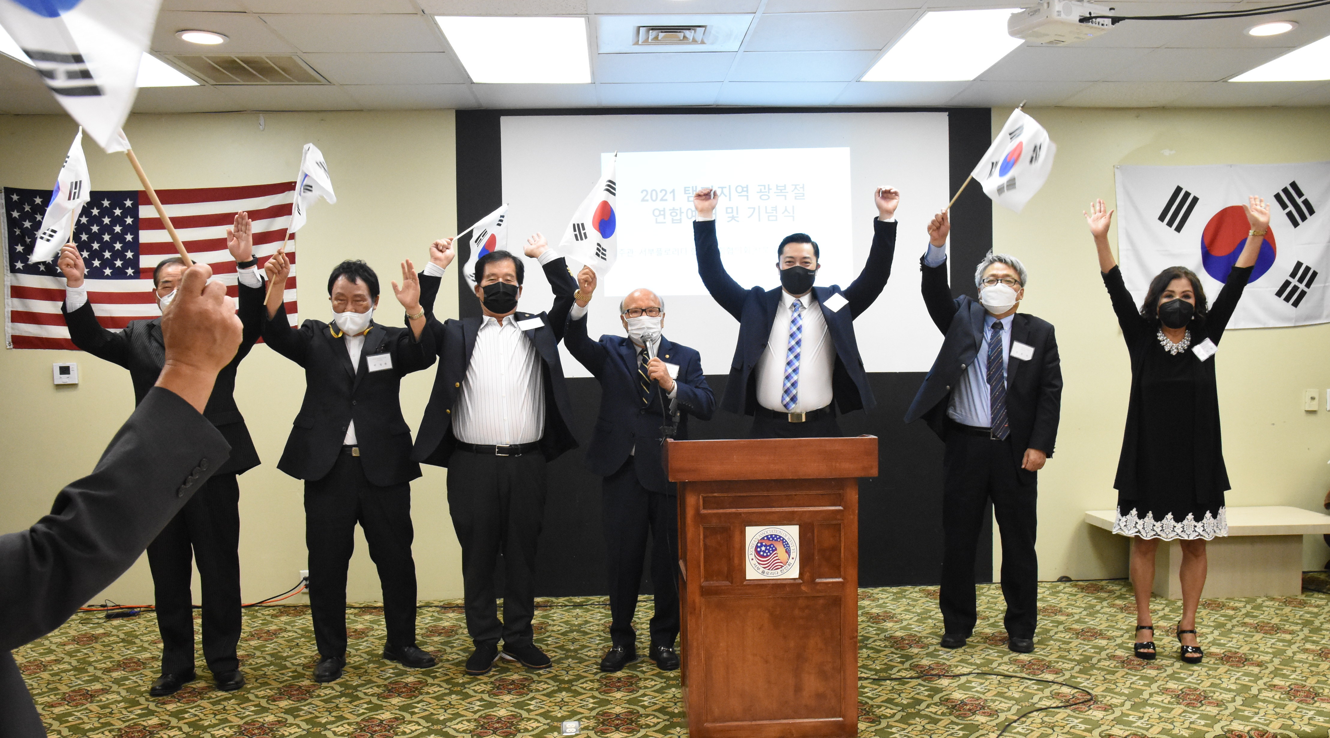 지난 2021년 열린 서부플로리다 한인회 광복절 경축에서 참석자들이 '대한독립만세'를 외치고 있다