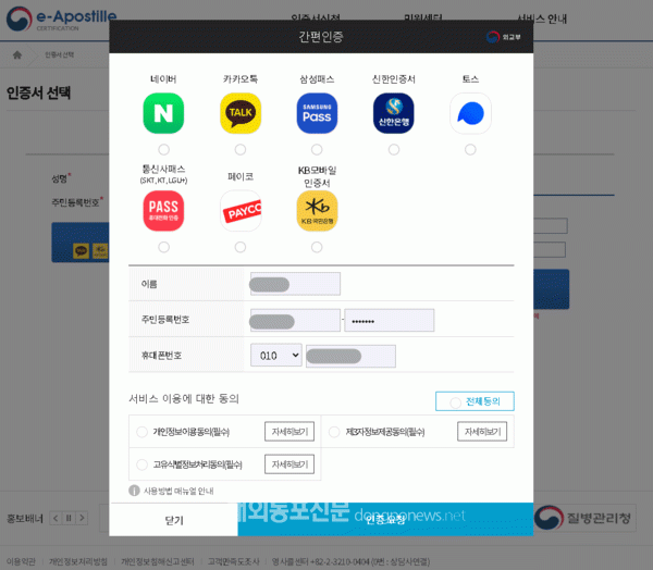 한국 외교부는 3일부터 8가지 민간 간편인증 수단으로도 외교부의 대표 온라인 영사민원서비스인 ‘영사민원24’와 ‘온라인 아포스티유’를 이용할 수 있다고 밝혔다.