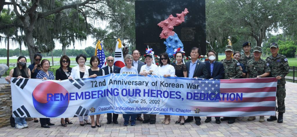전 서부 플로리다 최창건 회장과 오마영 회장, 서부 플로리다 한인회 임원들, 마이애미 협의회 임원들, 한국파견 미중부사 다국적 협조단 소개(협조단장 최희관 대령, 미중부사 연합전력분석단 최태원 중령, 협조장교 김기열 중령, 미통합 특수전사령부 연락장교 하치옥 소령)하는 시간을 끝으로 6.25전쟁 72주년 헌화식을 마쳤다.