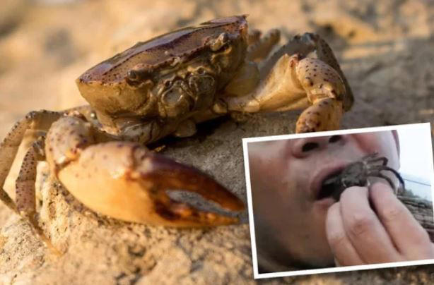 중국 동부 저장성의 루(39·남)씨는 게가 딸을 집게 발로 물자 화가 나 게를 산채로 입속에 넣는 일이 벌어졌다.