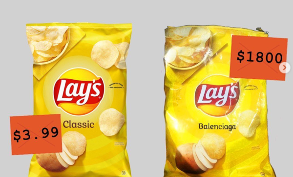프랑스 명품 브랜드 발렌시아가의 2023년 여름 컬렉션이 공개된 가운데 미국 유명 감자칩 브랜드 ‘레이즈’와 협업해 만든 과자 봉지 모양의 클러치백이 화제다.