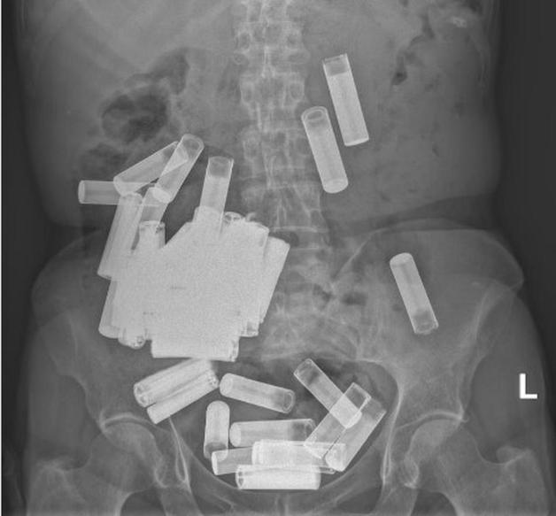일주일 동안 5개의 AA 사이즈 배터리가 변을 통해 몸 밖으로 빠져나왔다. 하지만 그 후 2주 동안 남은 배터리들이 몸 밖으로 빠져나오지 못했고 환자는 복통과 거식증을 호소하기 시작했다.