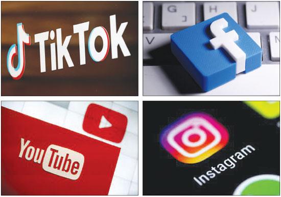 틱톡(왼쪽 위부터 시계방향으로), 페이스북, 인스타그램, 유튜브 로고. [로이터]