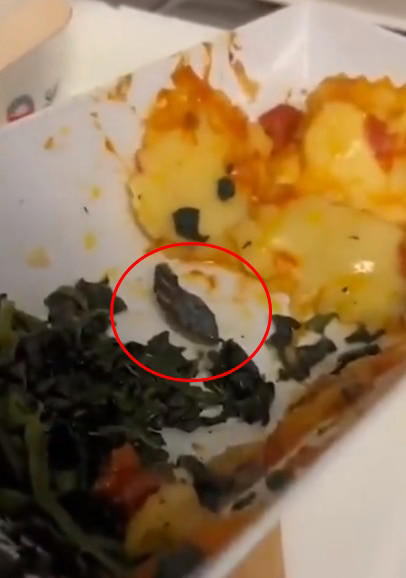 기내식 먹다 기겁, 절반 먹었는데 ‘뱀 머리’ 추정 물질이...