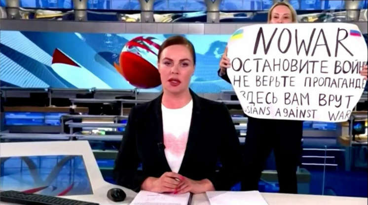 이 여성은 뉴스 앵커가 기사를 읽는 동안 "전쟁을 멈춰라. 전쟁 반대"라고 소리쳤고, 이 구호 소리와 장면은 몇 초 동안 그대로 방송됐다. 이후 방송사는 다른 화면으로 전환했다.