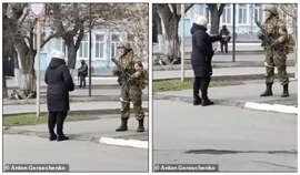 24일 영국 일간 데일리메일과 밀리터리 타임스의 보도에 따르면 트위터에서 신원 미상의 한 용감한 우크라이나 여성이 이날 중무장한 러시아 군인들과 대면하고 강하게 소리치며 대항하는 영상이 리트윗 됐다.