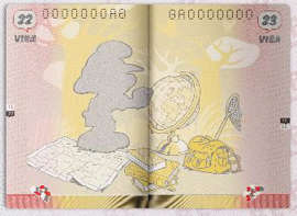 여권의 삽화 중 다수는 여행과 관련된 장면에서 따왔다. 땡땡 공식 웹사이트에 따르면 새 여권에는 미국, 시드니, 우주 등을 여행하는 땡땡의 모습이 그려졌다. 새 여권을 위해 특별히 만들어진 디자인 중에선 지도를 펼쳐 놓고 지구본을 바라보는 스머프 캐릭터도 포함됐다.