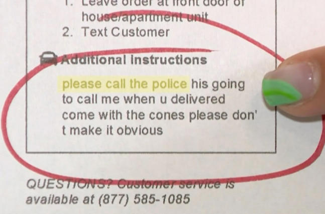 샌드위치와 버거 등 평범한 주문내역이었지만 직원들은 손님의 수상한 요청사항을 발견했다. 요청사항에 “경찰을 불러 달라. 경찰들과 함께 배달해 달라”며 “티내지 말아 달라”는 내용이 담긴 것이다.