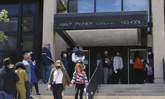 © 제공: 세계일보지난 17일(현지시간) 총기사고가 발생한 미국 시카고의 월트 디즈니 마그넷 스쿨 앞에서 부모들이 아이들을 기다리고 있다. AP연합뉴스
