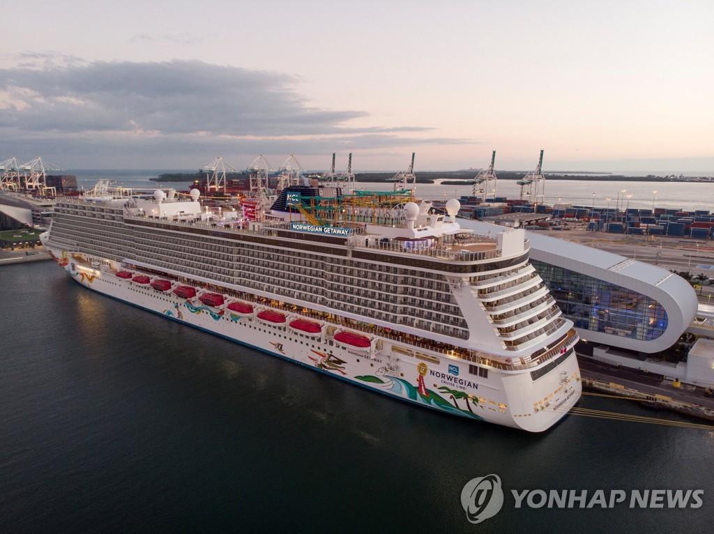 9일 노르웨지안 크루즈 라인이 미국내 항구에서 출항하는 크루즈 선내 마스크 의무화를 해제했다. 사진은 지난 1월 5일 플로리다주 마이애미에 정박한 이 회사 소속 노르웨지안 겟어웨이 호의 모습.