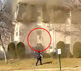 미국의 한 아파트가 불길에 휩싸인 가운데, 세 살배기 아기가 창밖으로 던져져 구조됐다.