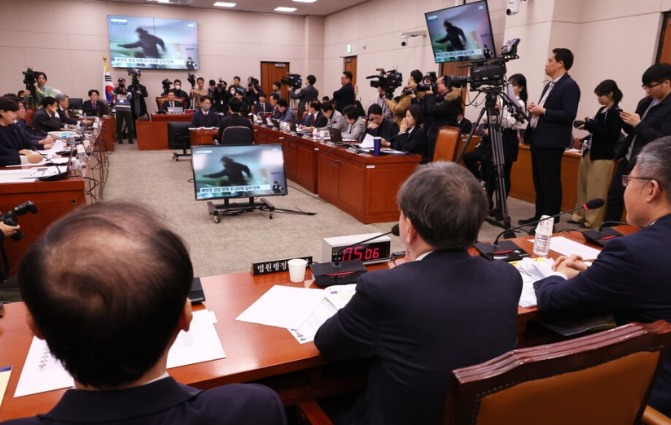 국회 법제사법위원회 전체회의서 서부지법 현장 사태 관련 뉴스가 나오고 있다. ⓒ 연합뉴스