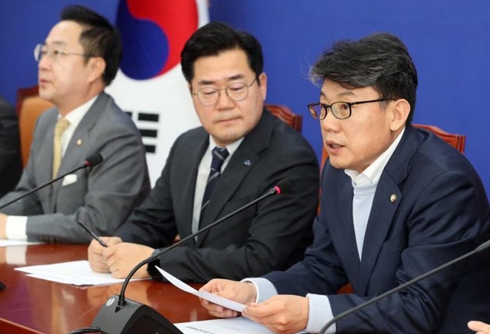 진성준 더불어민주당 정책위의장이 3일 오전 서울 여의도 국회에서 열린 원내대책회의에서 발언하고 있다. 2024.12.3 뉴스1